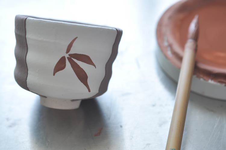 据绘制老师说,这竹叶来源于工作室的米竹盆栽,他每天都面对着米竹,总算是找了个机会在器物上表达出来了。
