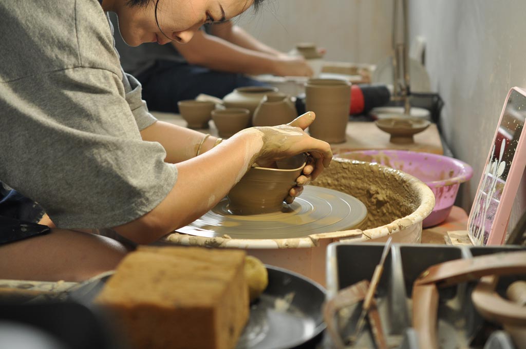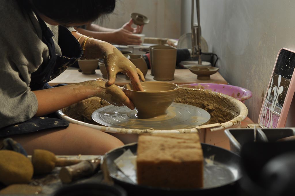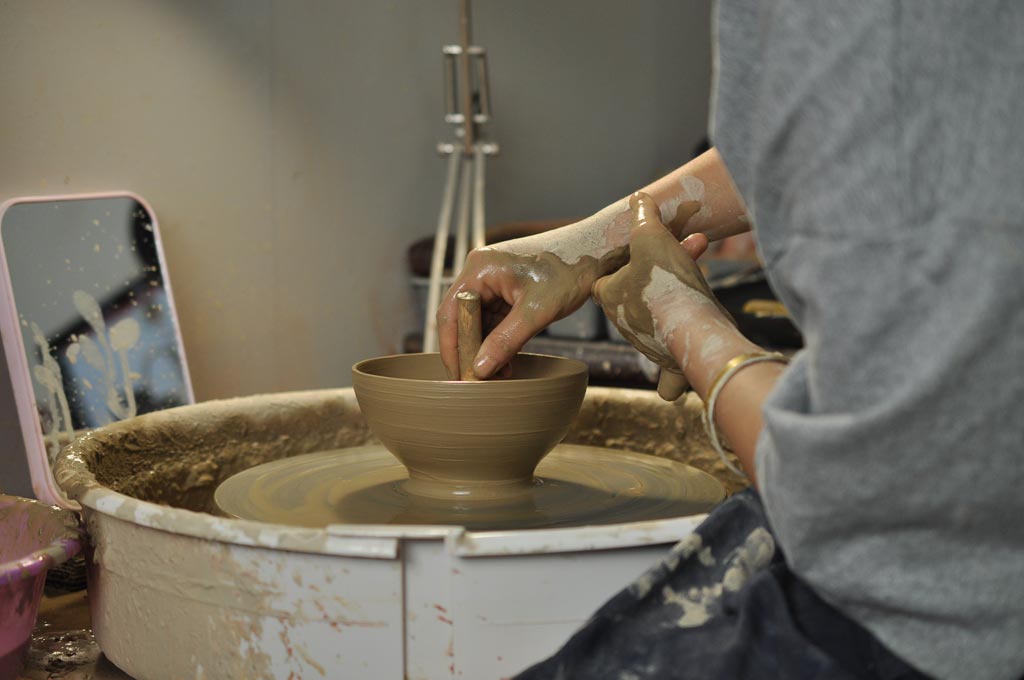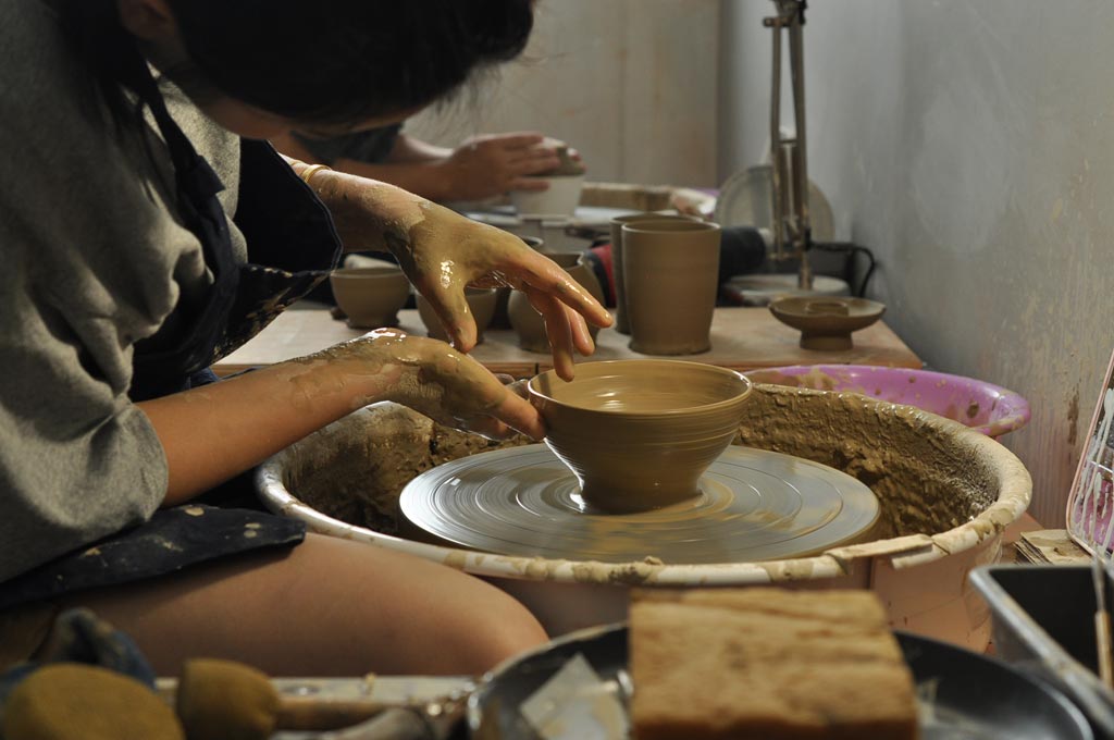 第一次脱离老师自己拉出一个碗,泥巴总是不听话,在手里不成形,完全拉不出一个圆形。